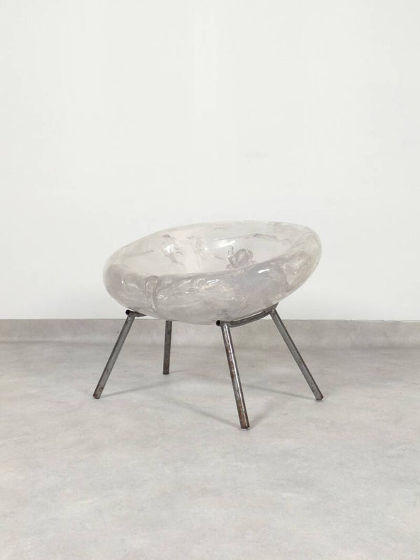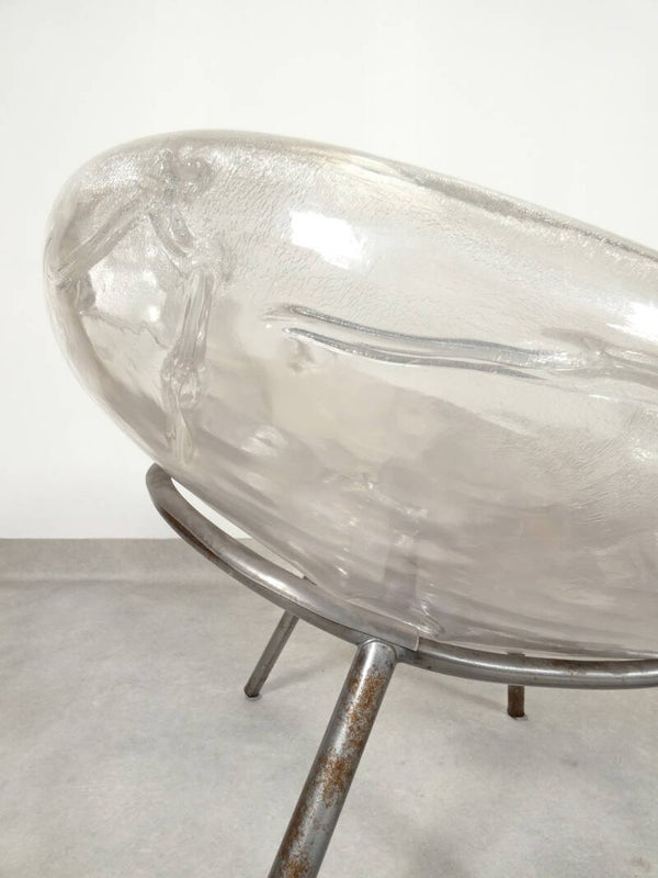 The chairs, also known as the 'Human Being' chairs, are evocative of ice with trapped air bubbles. They were used in the Star Trek Enterprise episode, “The Aenar,” as set dressing.
