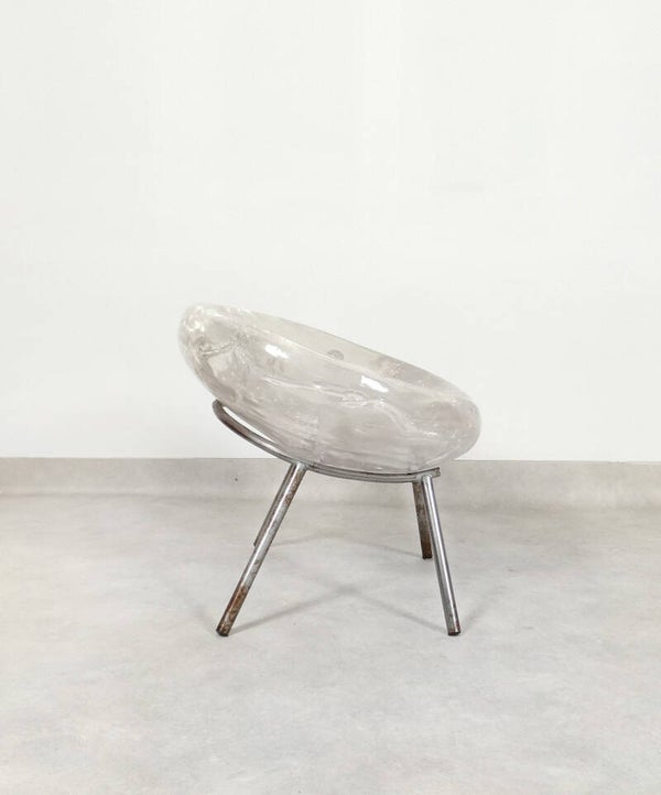 Acrylic plastic on a chromed steel frame, maker's mark to the bottom of the seating. The chair in overall very good condition.
