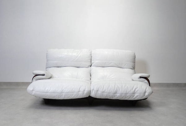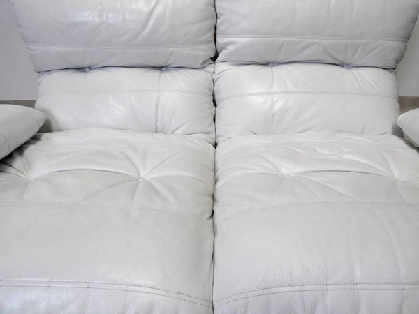 Beautiful vintage Marsala 2-seater sofa in its original white leather finish. Like the better-known 'Togo' by the same designer, this sofa is super comfortable to relax in.