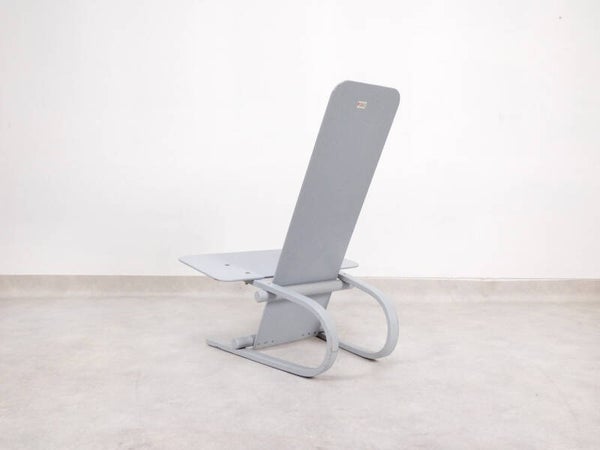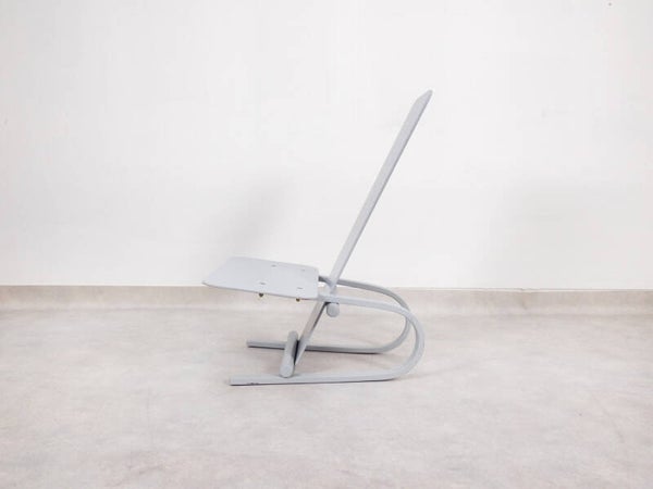 Light grey lacquered plywood with original manufacturer's label, and floor protection rubbers on the feet.