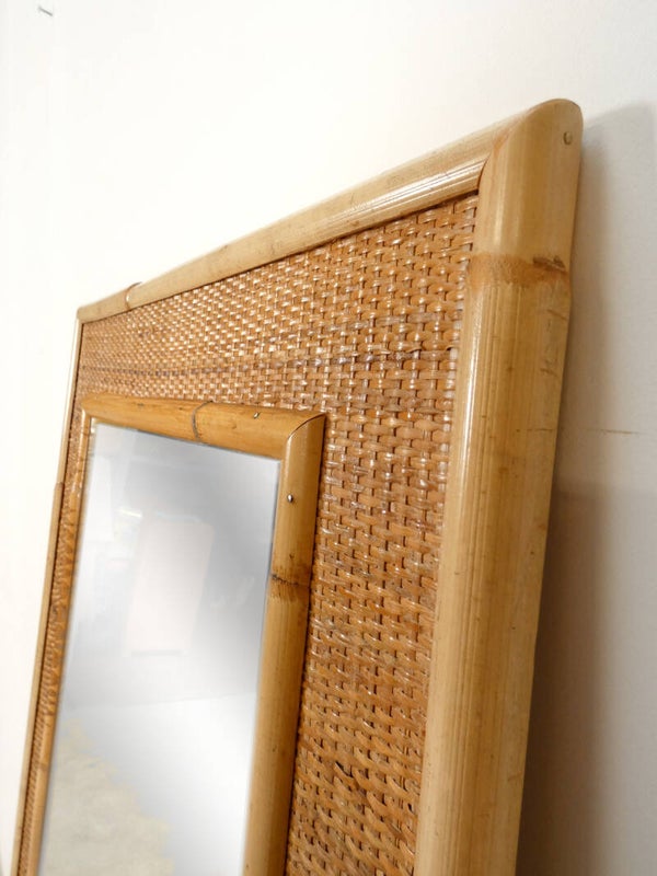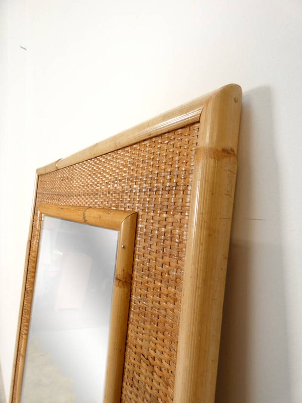 Beautifull Italian mirror made of wood, rattan and bamboo.