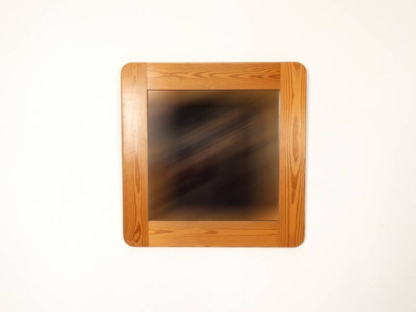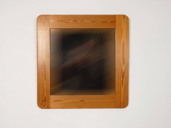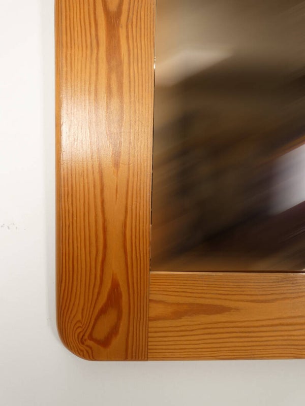 Vintage massief dennenhouten spiegel, in brutalistische stijl, waarschijnlijk gemaakt in België in de late jaren 70.