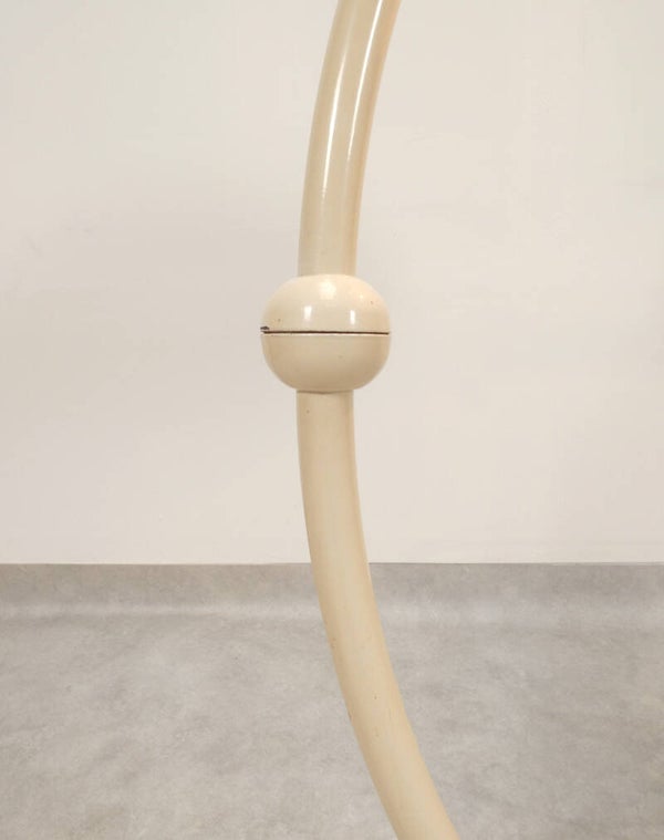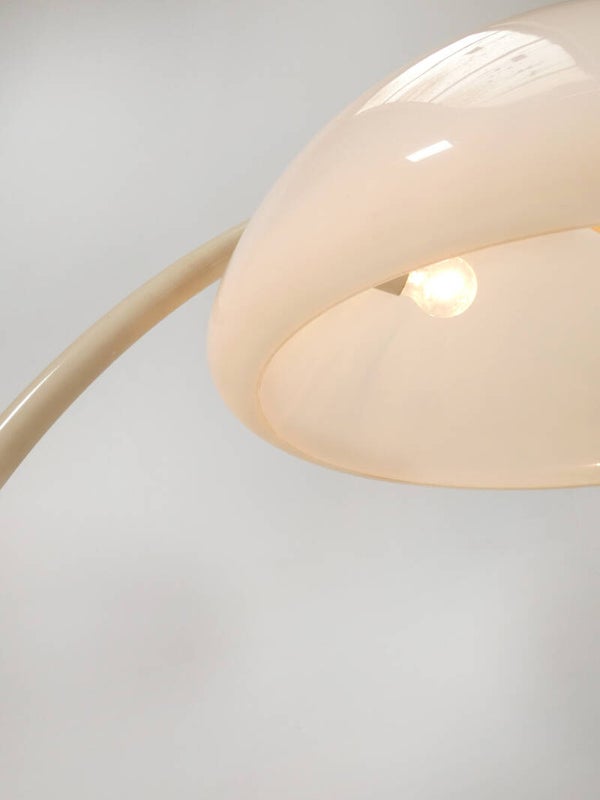 This vintage lamp is an older model from the 1980s with the original shade in white acrylic and a metal rod in a cream color.