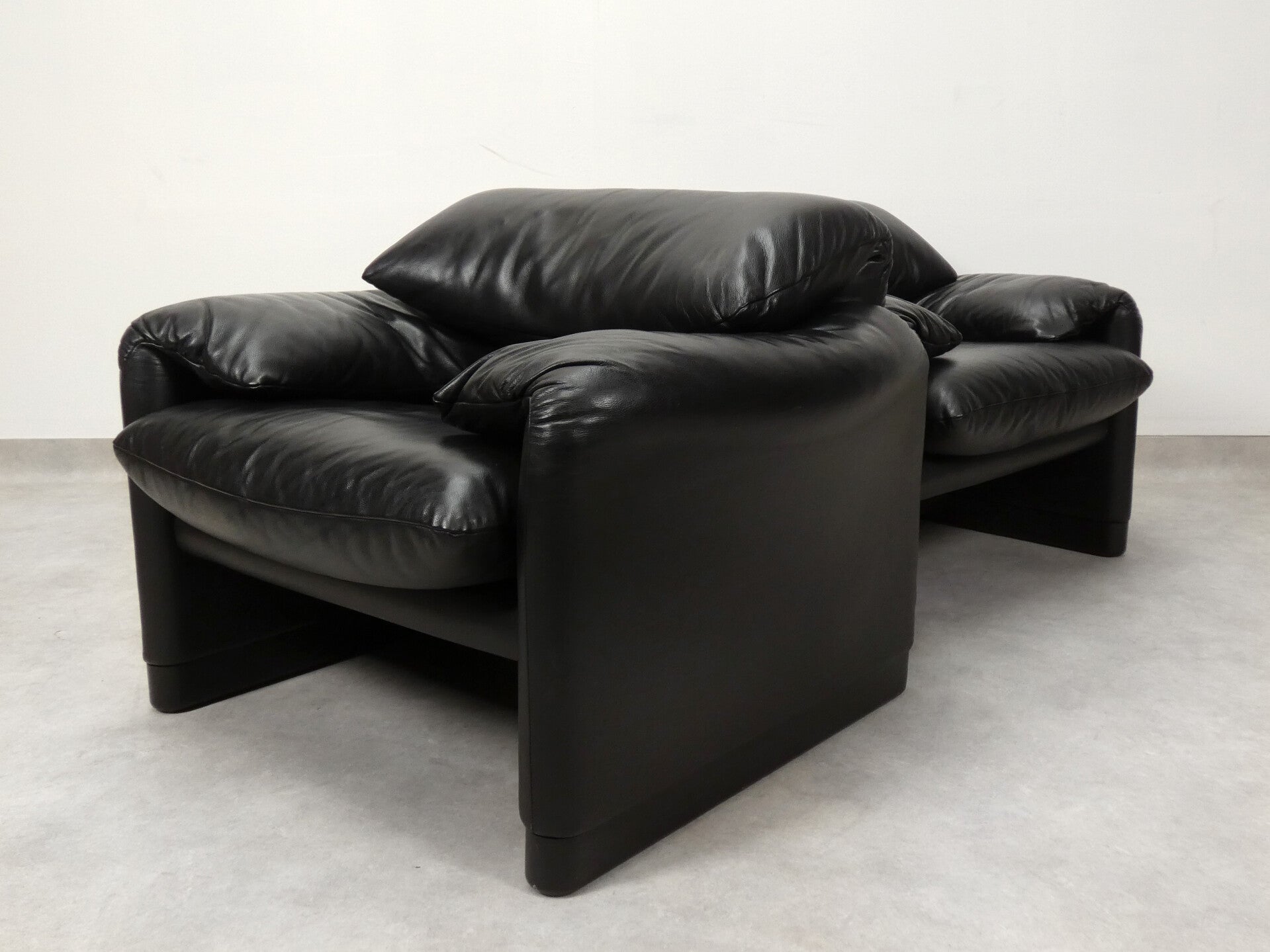 2 Cassina Maralunga armchairs - black leather
