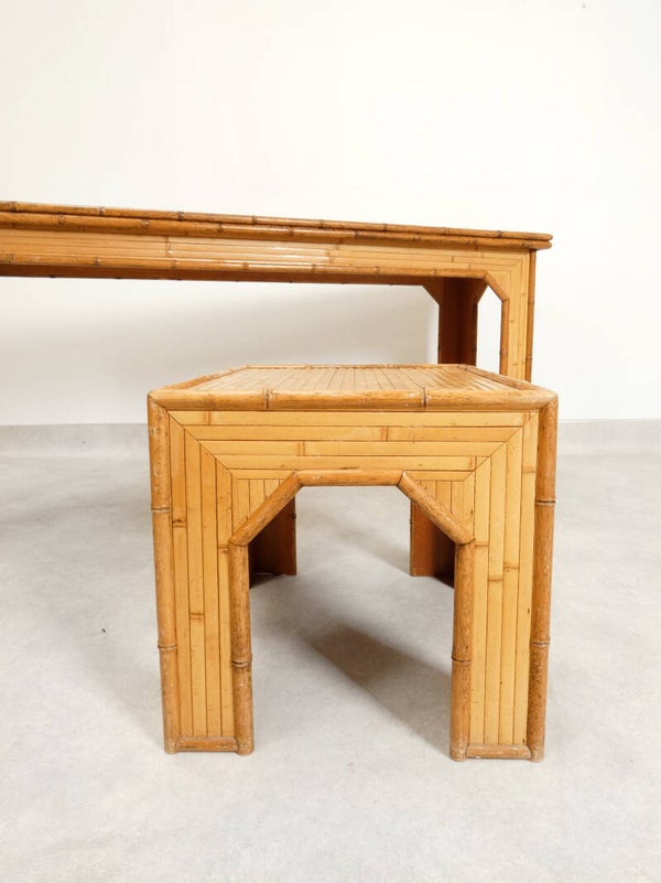 Rectangular Dressoir console with matching sidetable in wood and bamboo. Made in the 70r's, originated from France and made out of a wooden base finished with bamboo details.