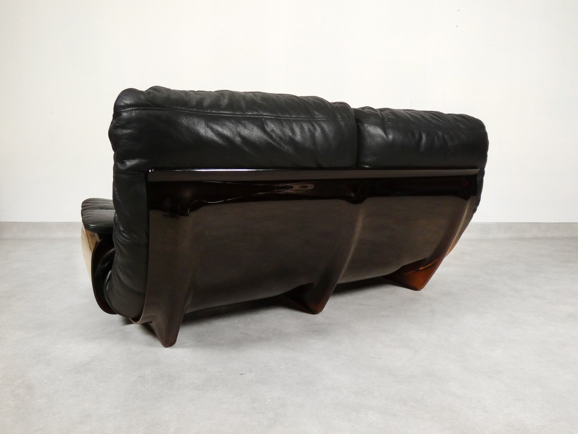 Beautiful vintage and fully original Marsala 2-seater sofa in black leather finish. Just like the more well-known 'Togo' by the same designer, this sofa is super comfortable to relax in.