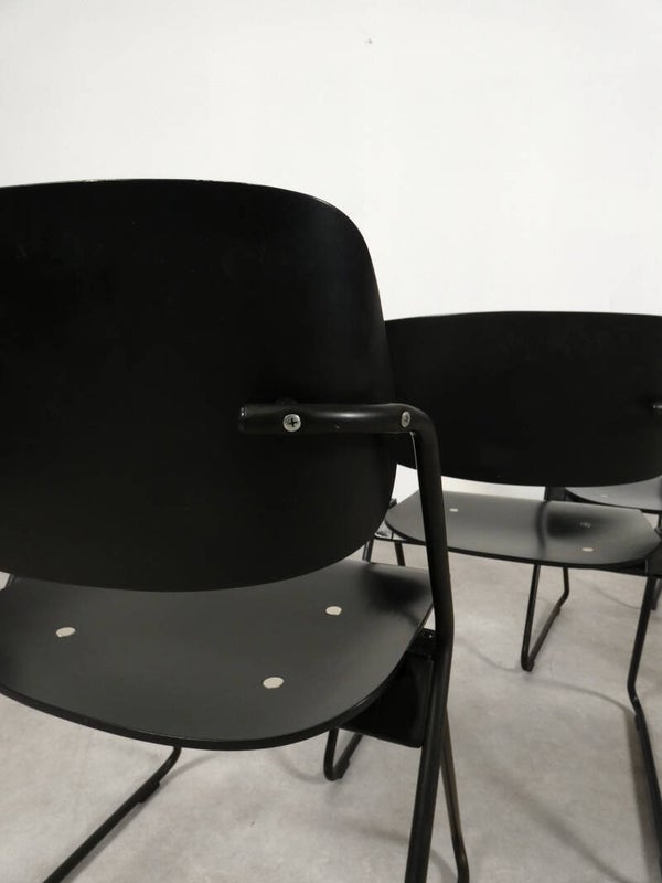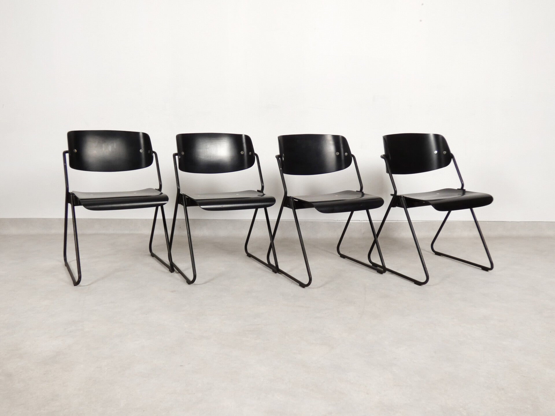 4 black plywood chairs with black metal base designed by Georg Leowald for Wilkhahn, Germany ca. 1960.