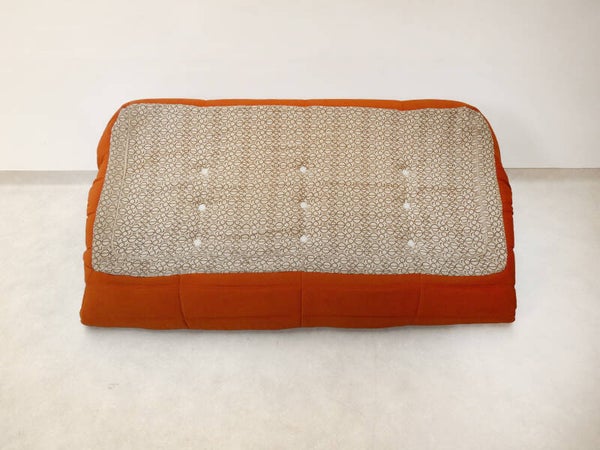 This set is new and professionally reupholstered in high quality soft & supple Aristide fabric with a burnt orage (orange-rusty) color.