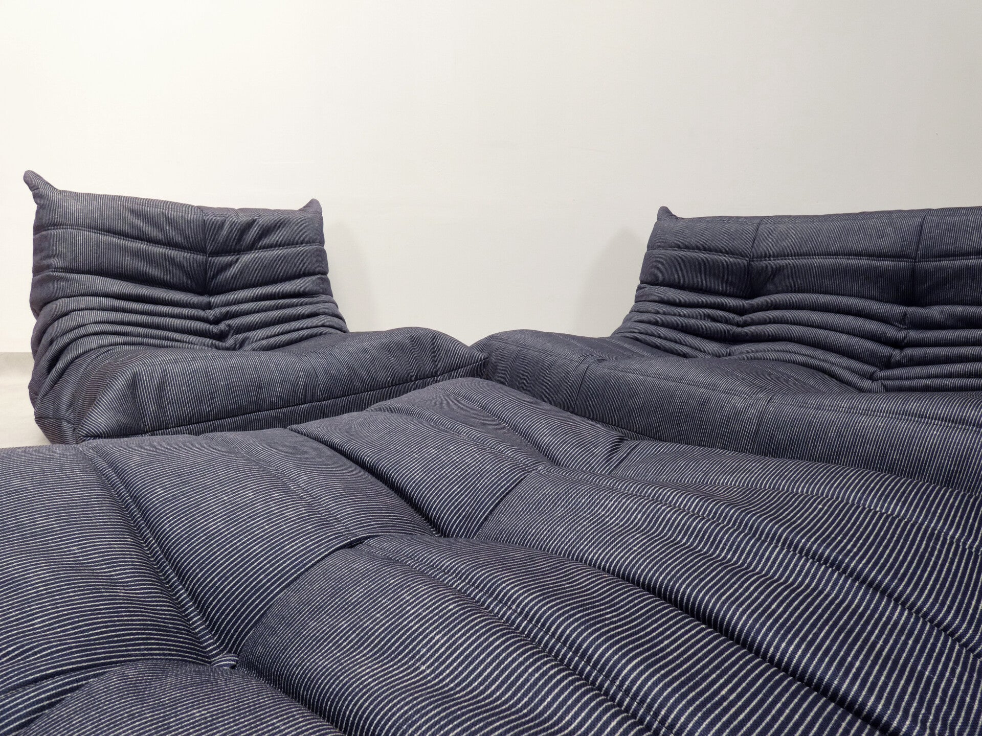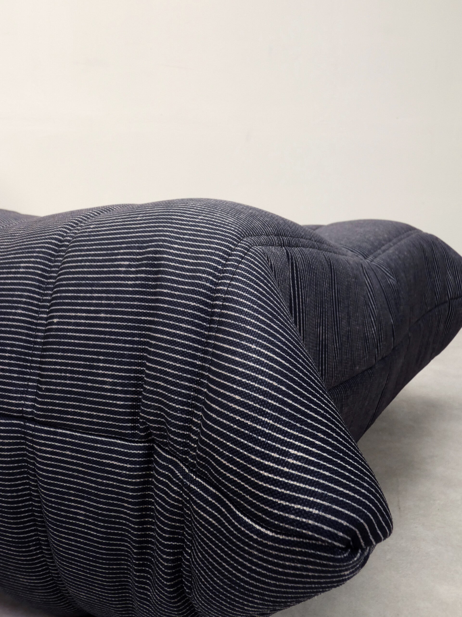 Ligne Roset Togo - 1 seater & ottoman - blue pinstripe fabric