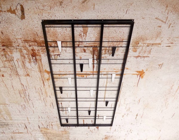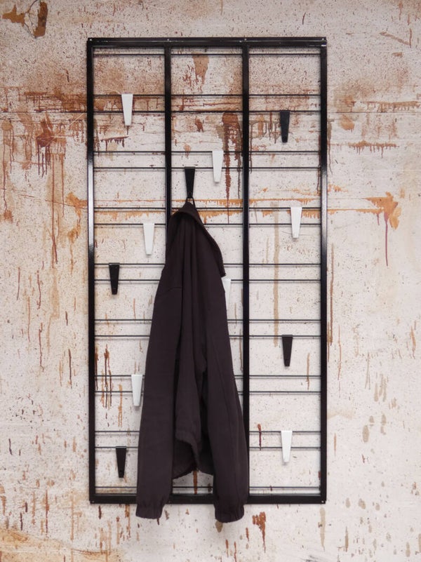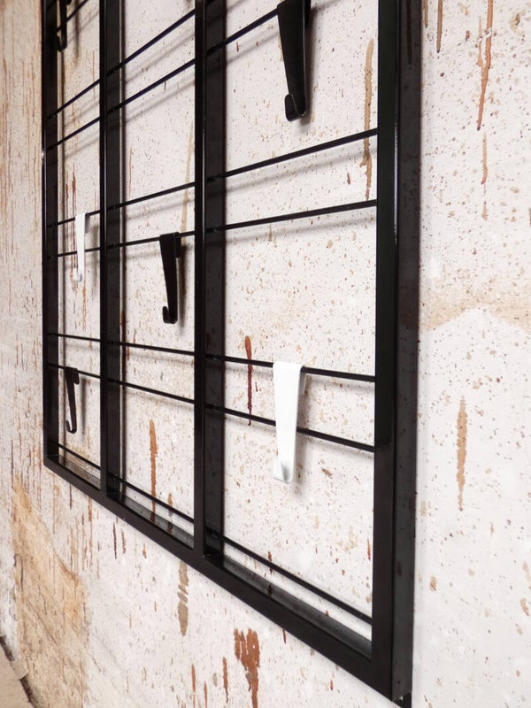Large black metal coat rack with 14 black & white hooks originally designed by Coen de Vries in his own designstudio Devo, and later produced by Pilastro.