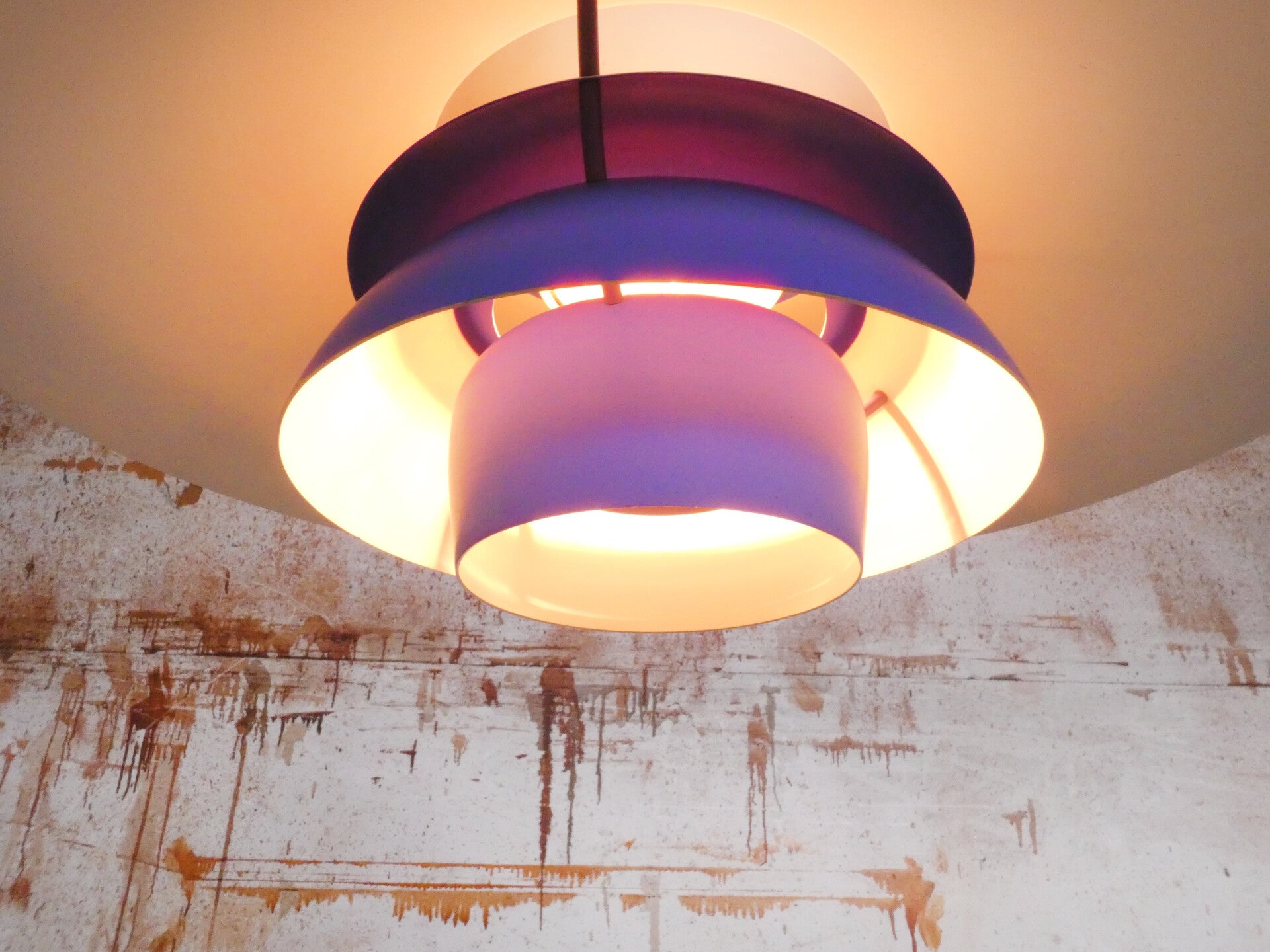 This is an early model of the lamp, visible on the upper part, which was manufactured until 1980 from two parts, riveted together, with a large spring inside as a suspension system. In the later types (from 1994) this was replaced by another, fixed, construction.