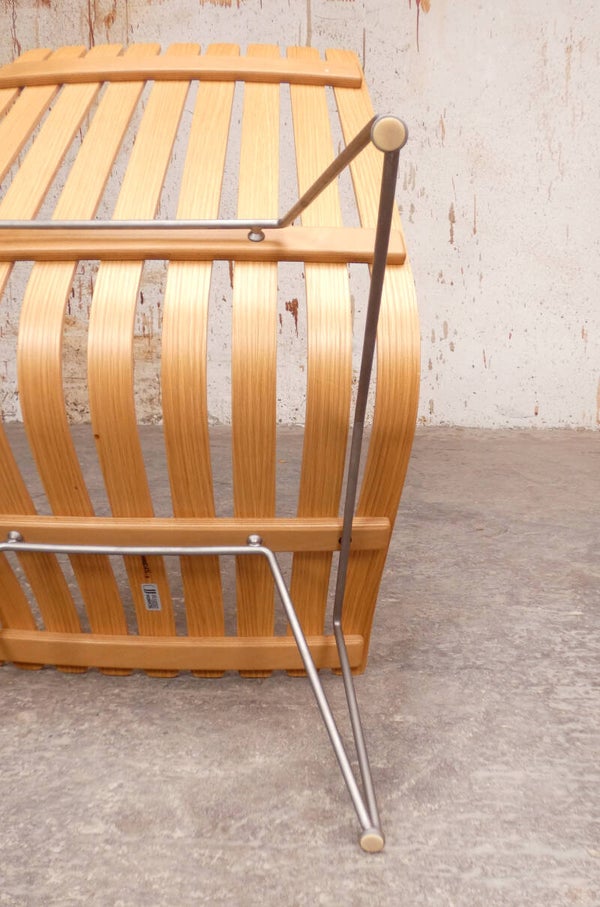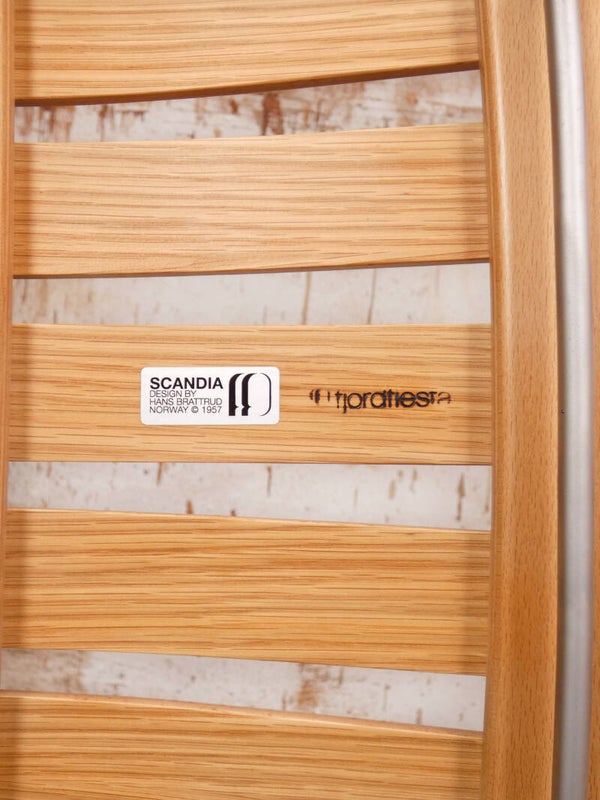 After some minor adjustments made by Brattrud himself, the Scandia chairs went into production under Fjordfiesta and was brought back on the market in 2002.