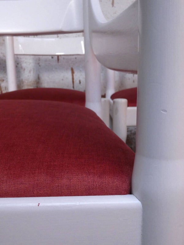 All seats have been professionally reupholstered with a dark red velvet fabric.