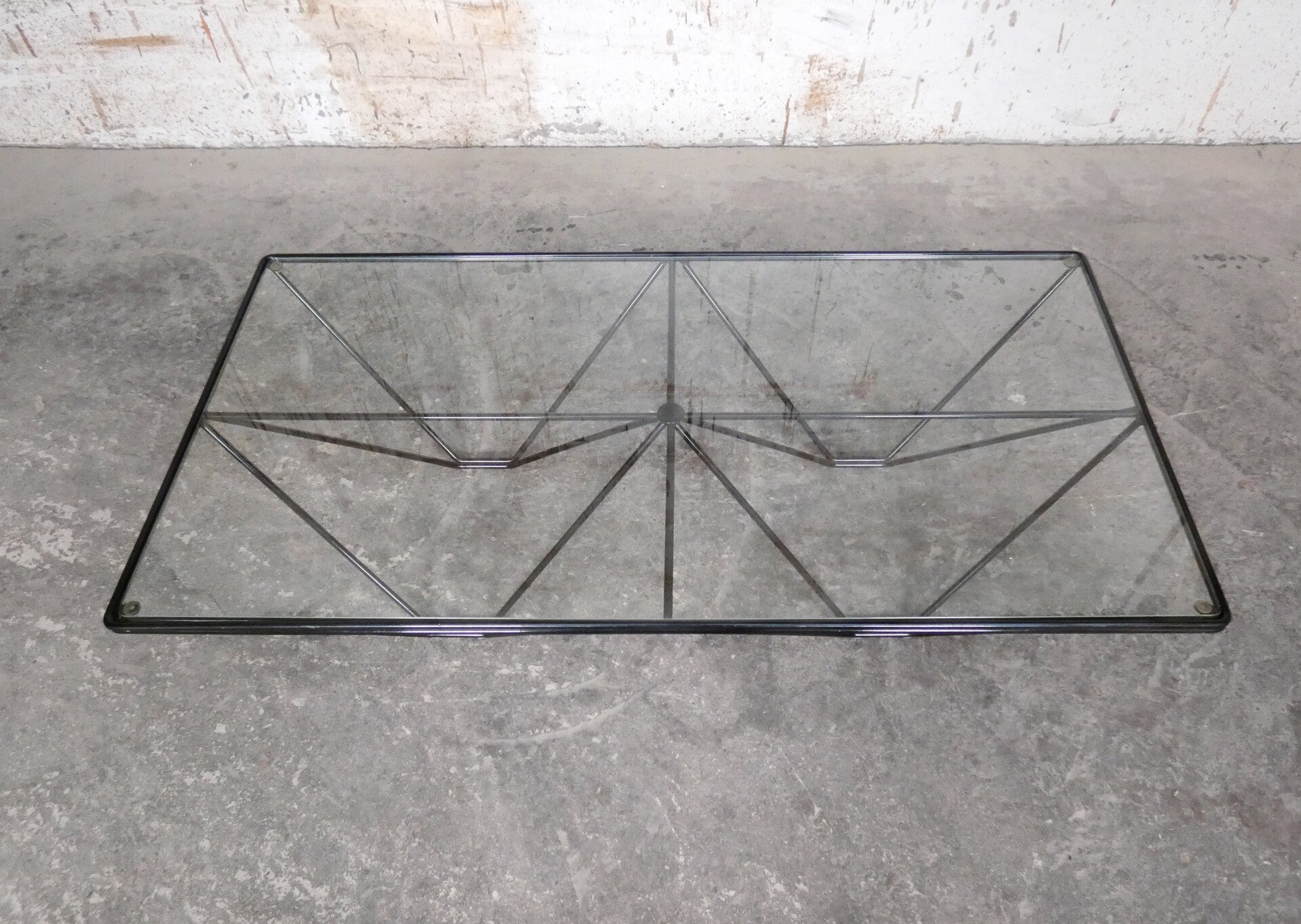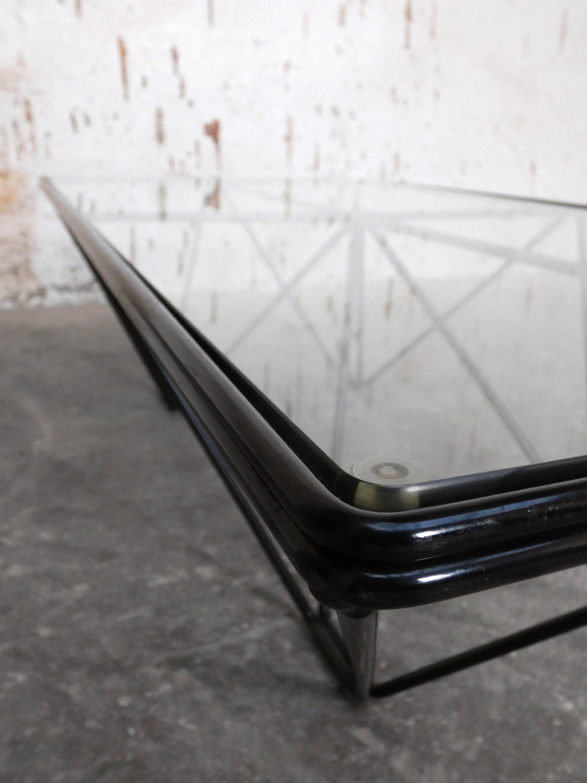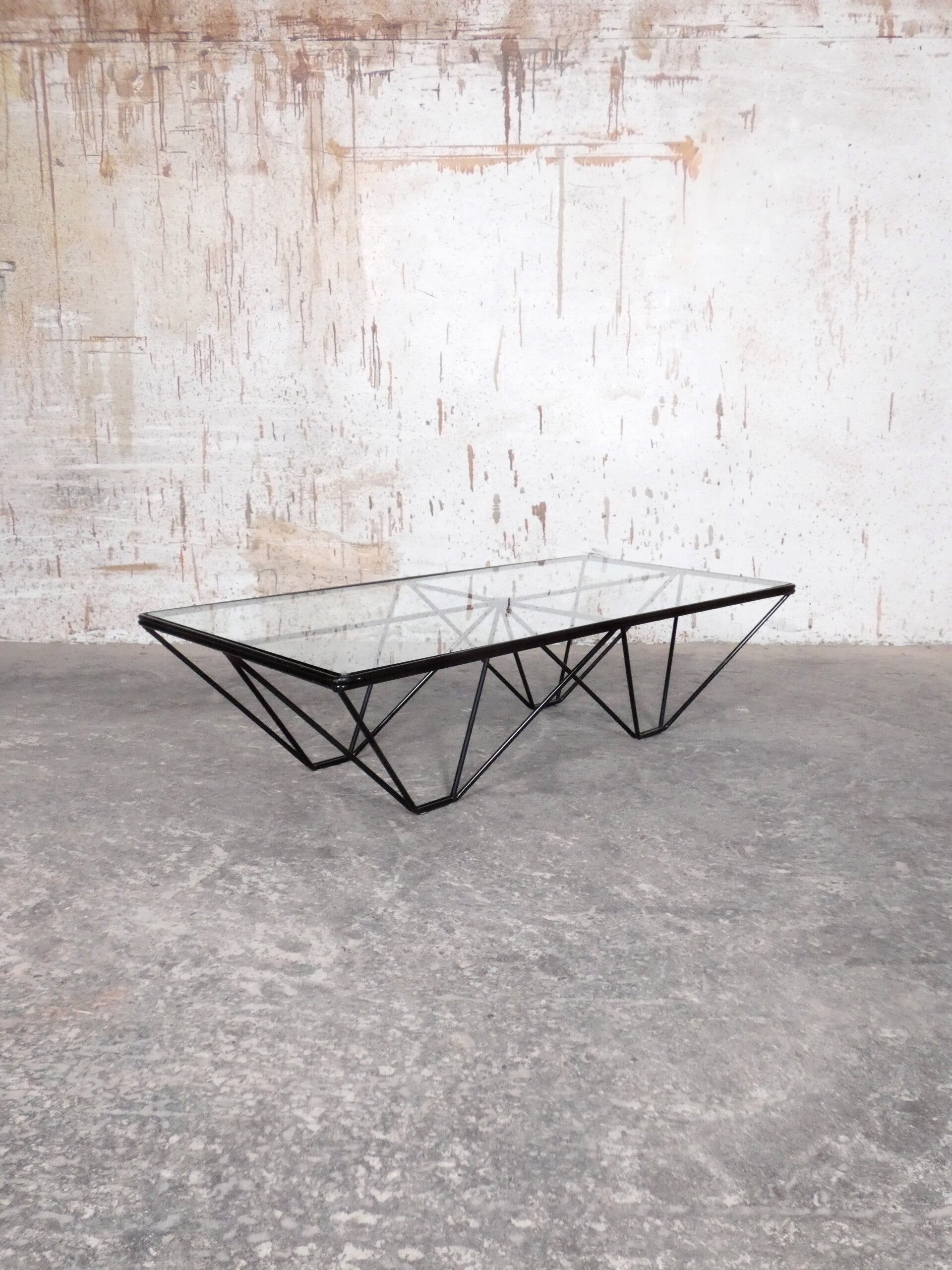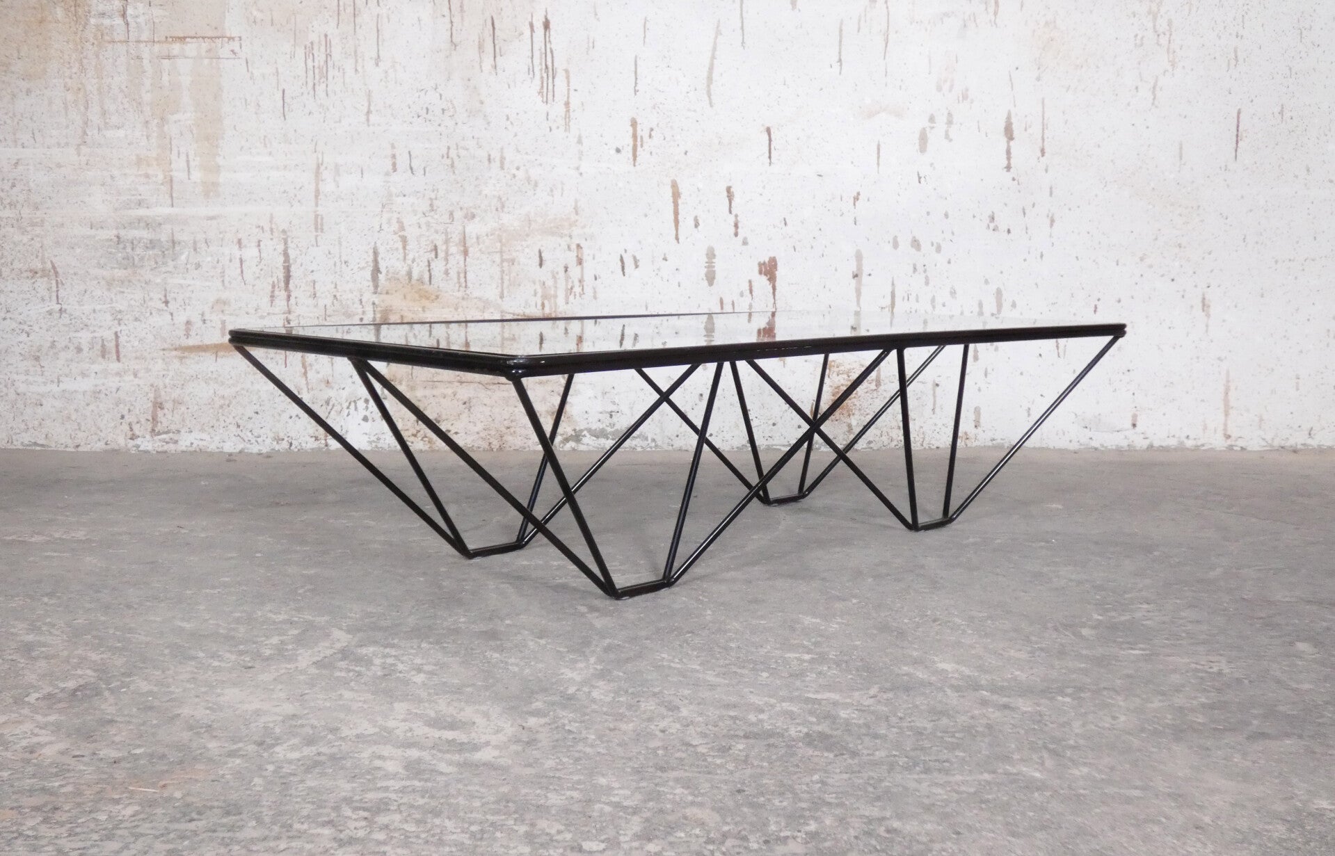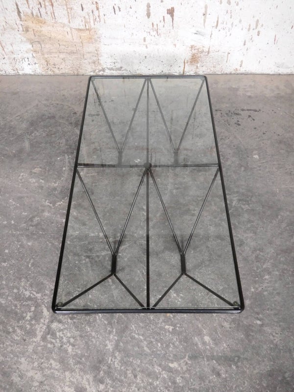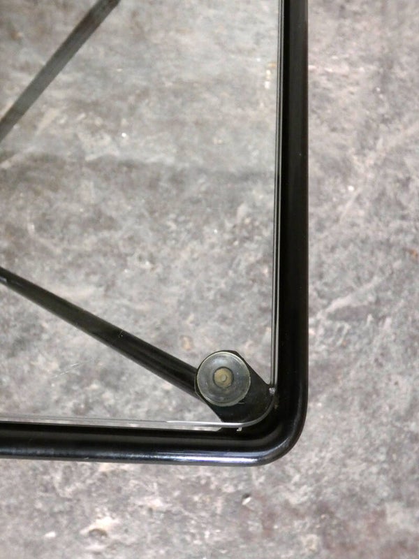 Beautiful pyramid-shaped lacquered metal frame with a glass top.