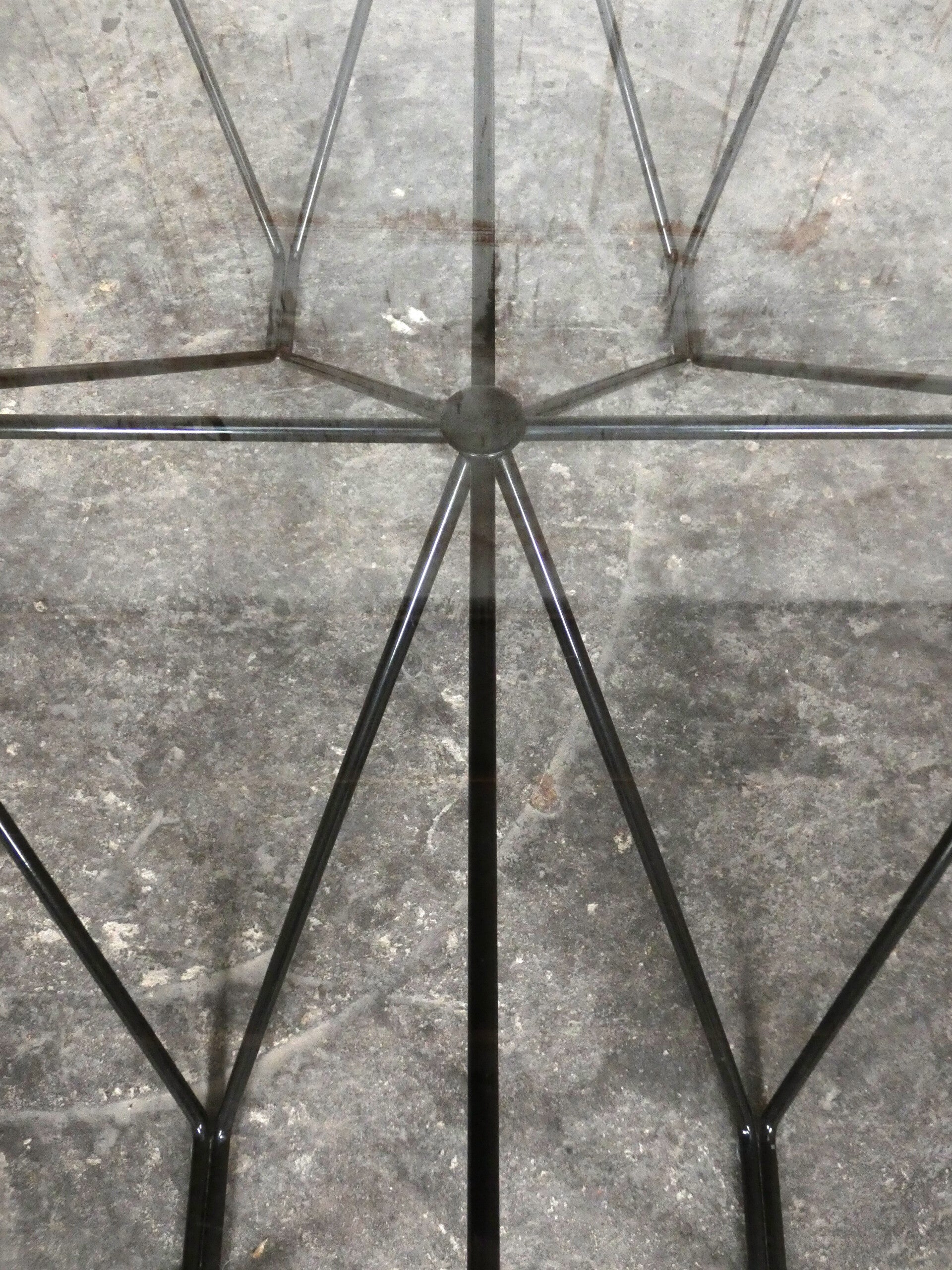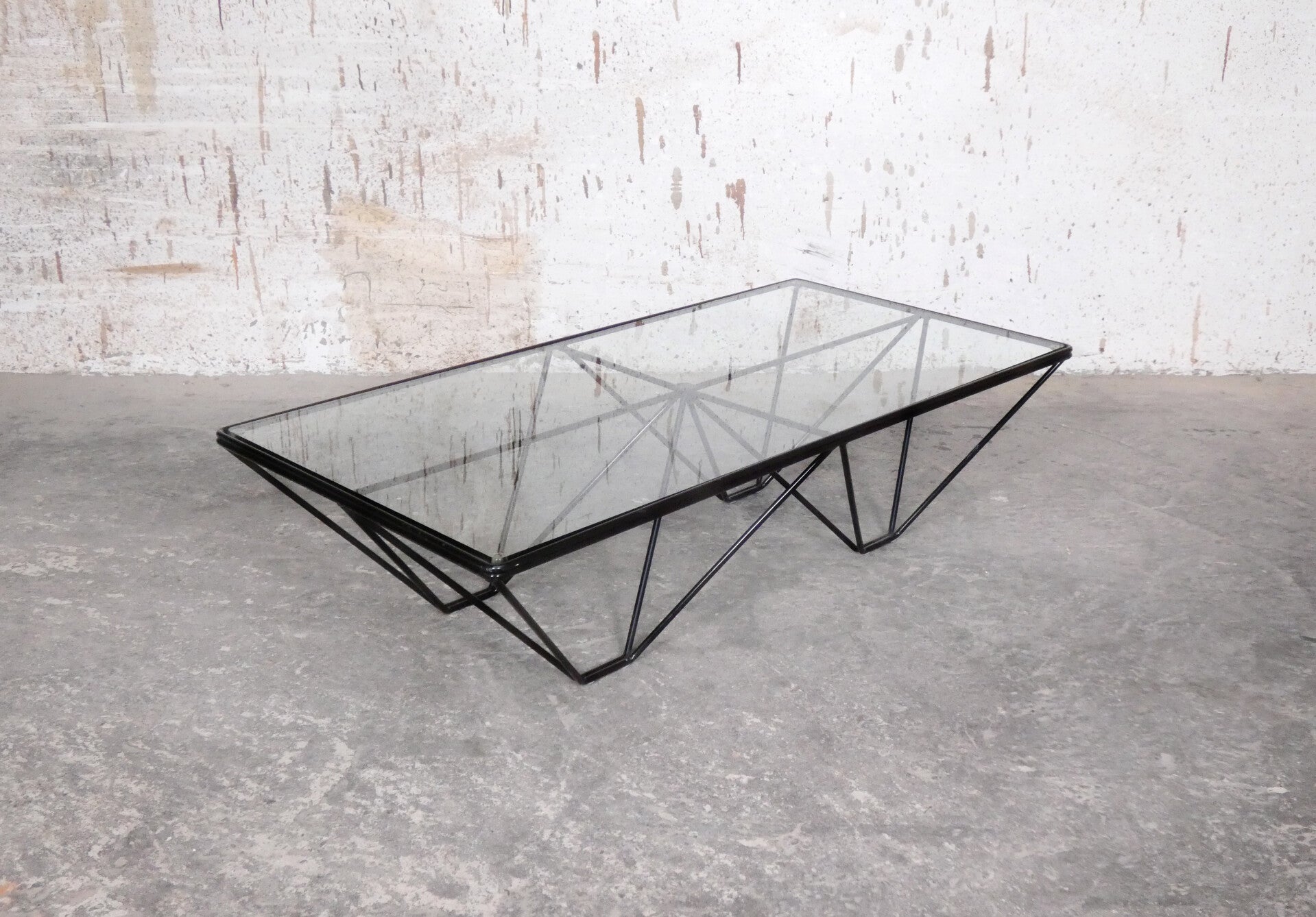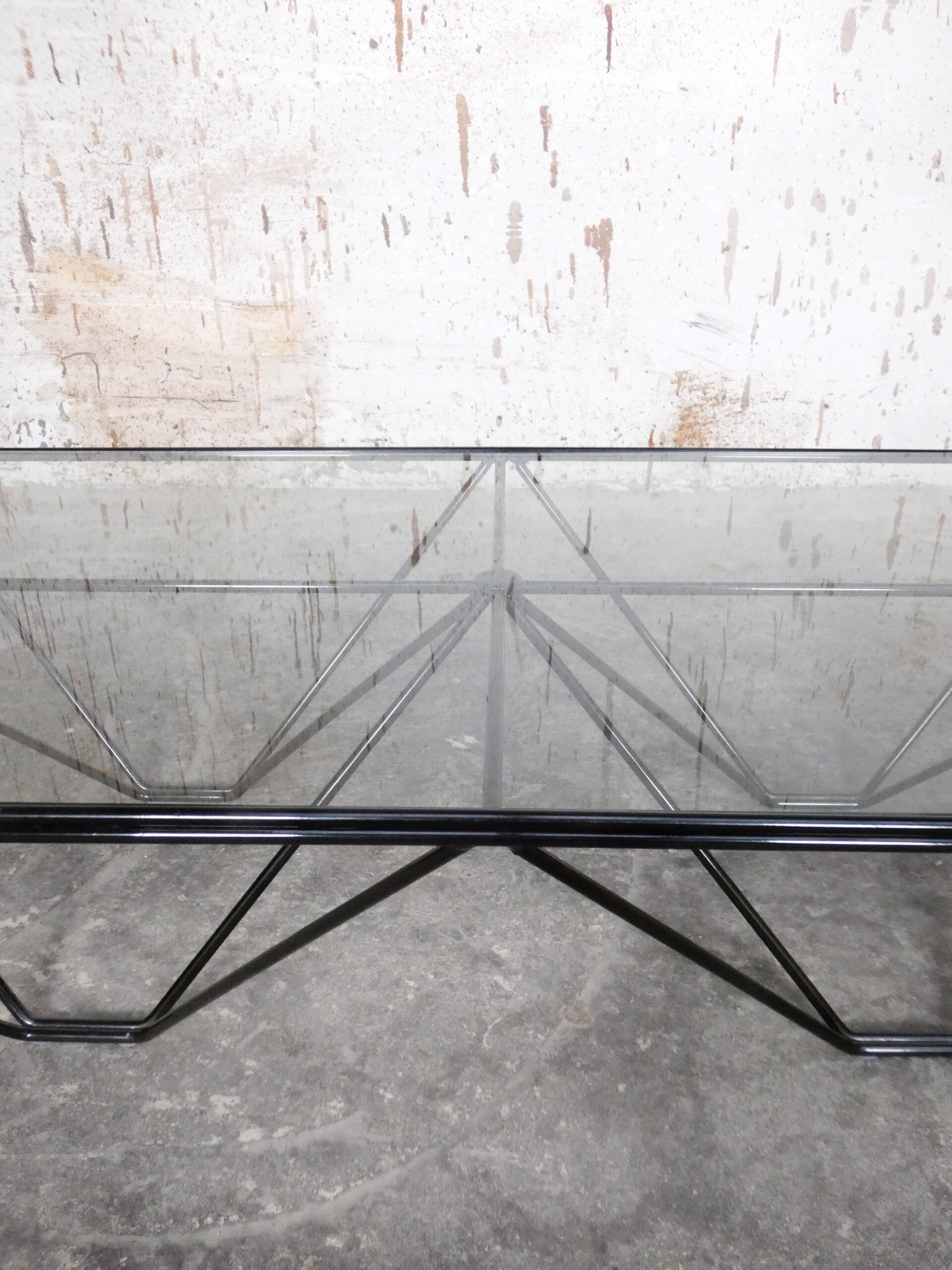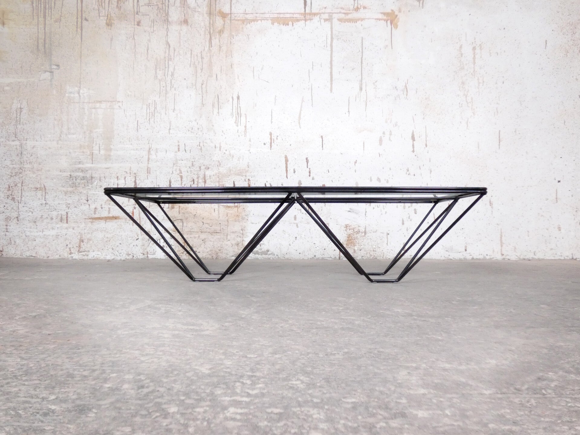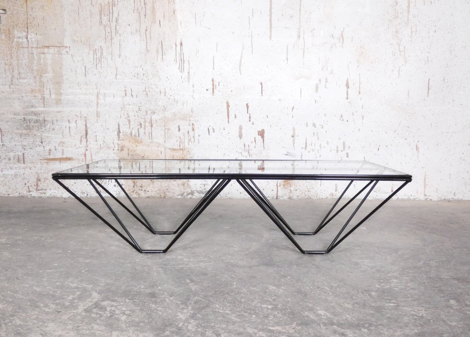 Beautiful pyramid-shaped lacquered metal frame with a glass top.