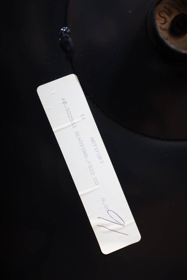 Alles in heel goede, originele staat. De bekleding is onbeschadigd en in uitstekende conditie, evenals de zwart gelakte metalen poot.